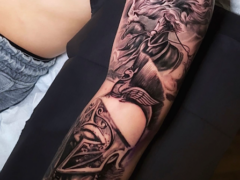 Cory James, a tattoo artist in Austin, TX operating out of his own private studio called Lost Edge, specializes in black and grey tattoos. His styles include realistic portraiture and surrealism tackling subjects including the human form, faces, skulls, animals, and classical statues. Consistently ranked one of the top artists in Austin, Cory prides himself on customer service and customer experience. He also co-owns Black Market Tattoo Care, studies fine art, and consults for tattoo technology companies. Come get a tattoo from an artist with rave reviews, a loyal fan base, and a comfortable private studio in which to realize your vision.
