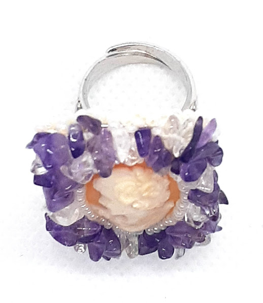 The jewelry is created from Mediterranean shell, coral and carved Venetian glass. These main materials are intricately and delicately constructed into these pieces of art that are then mounted in 14/18kt gold and 800/925 silver, all by hand in Italy.